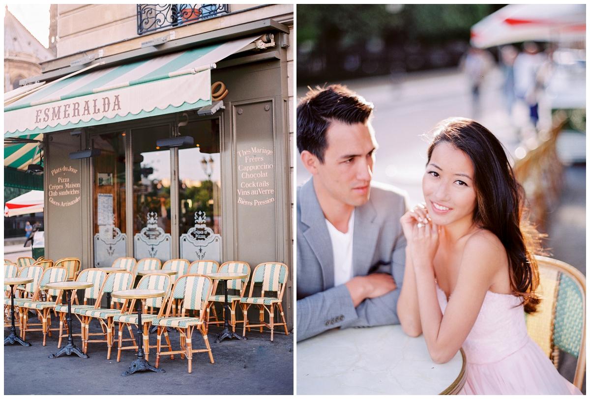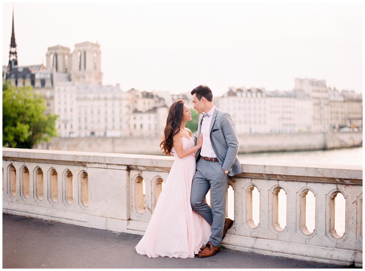 How adorable is this couple in Paris? The stylish Jean and her handsome fiance Nick came all the way from Boston to have their engagement photos in Paris shot on film. Jean has the influential blog EXTRA PETITE where she shares hes best tips when it comes to Fashion. So it is not surprising she looked amazing in her custom dresses (read more on her post HERE). We started in the rental apartment in Paris as we wanted my now signature balcony shot, then we went through the city for photos by the Eiffel Tower and the Seine river. As a photographer in Paris I know all the best locations to get a real feel of the city.